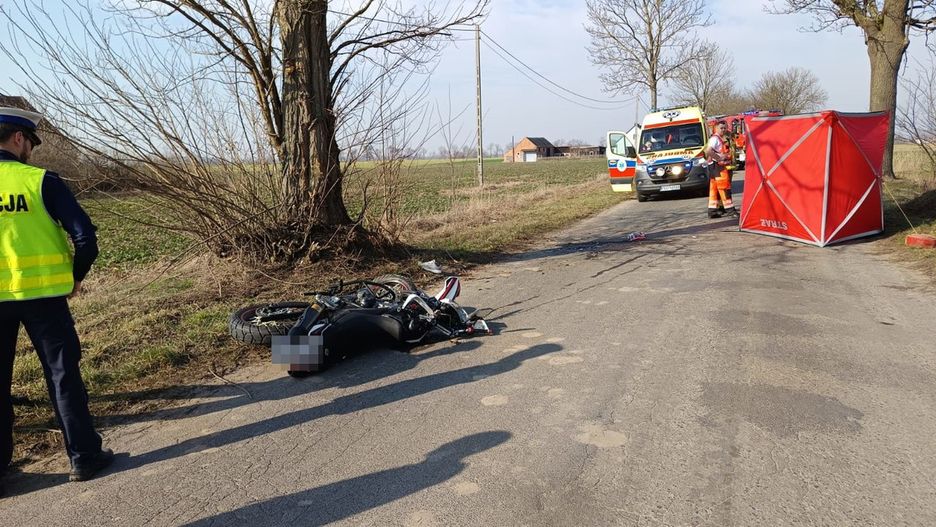 Jak wynika ze wstępnych ustaleń policjantów, 29-letni kierujący motocyklem nie dostosował prędkości do warunków na drodze, a następnie stracił panowanie nad pojazdem i uderzył w drzewo.