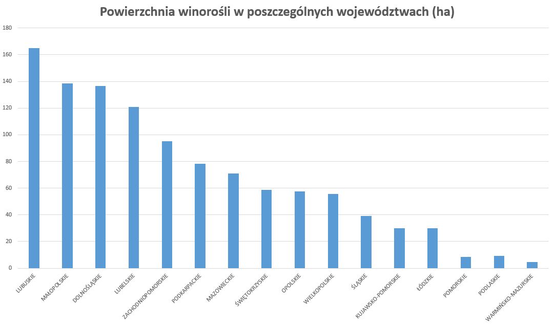 Za sukcesem stoją ludzie — często młodzi rolnicy, którzy połączyli pasję z biznesem. Coraz częściej inwestują w nowoczesny sprzęt, ekologiczne metody uprawy i marketing oparty na regionalnej tożsamości.>Jak wskazuje KOWR, winnice pojawiają się już nie tylko w Małopolsce czy na Dolnym Śląsku, ale też w Wielkopolsce, na Mazowszu i Pomorzu (patrz wykres). Właściwie to w każdym województwie powstały już winnice. To znak, że boom winiarski 2025 to nie tylko liczby, ale też geograficzna ekspansja winiarstwa.