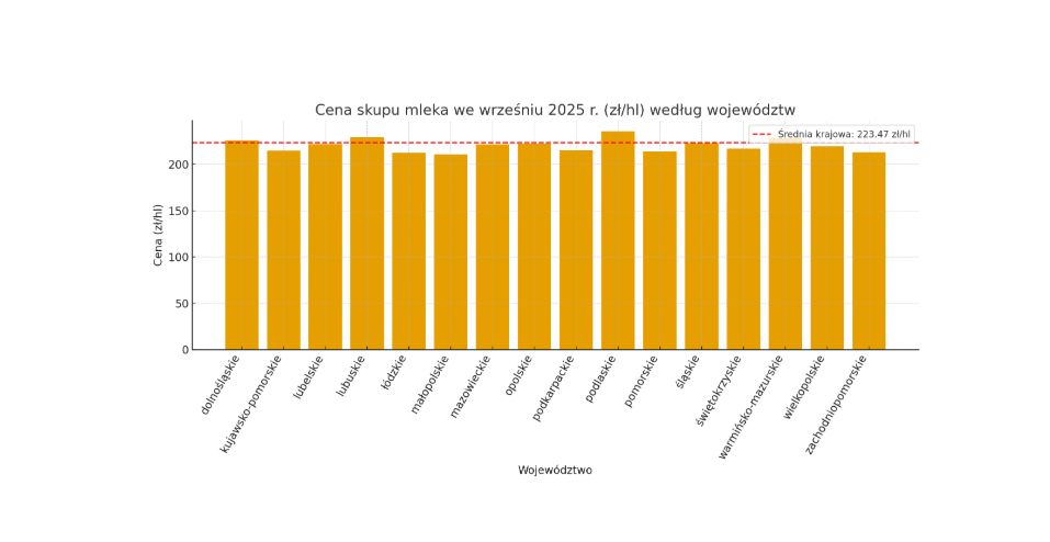 Tradycyjnie już, najwyższe ceny skupu mleka odnotowujemy w regionach o dużej koncentracji gospodarstw mlecznych i nowoczesnej infrastrukturze przetwórczej. Liderem pozostaje województwo podlaskie. Konkretnie to hodowcy bydła mlecznego dostawali tam 235,77 zł/hl mleka. Wysokie ceny uzyskali również producenci z województw lubuskiego (229,35 zł/hl) oraz warmińsko-mazurskiego (228,23 zł/hl).