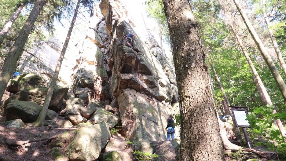 Z okolic zamku ruszamy żółtym szlakiem - Leśnym Szlakiem Wspinaczkowym - do Polanicy-Zdroju.
