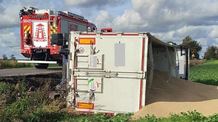 Na szczęście kierowca nie odniósł żadnych obrażeń, był także trzeźwy. Choć sytuacja wyglądała poważnie, skończyło się jedynie na stratach materialnych. Z przewróconej naczepy wysypało się przewożone zboże, które rozsypało się po pobliskim polu.