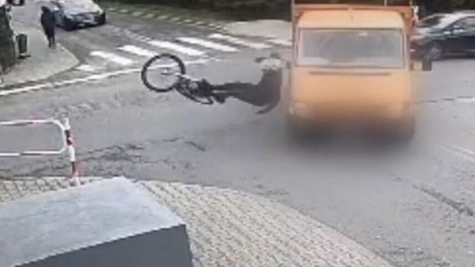 Dostawczak zajechał drogę rowerzyście. Doszło do bardzo groźnie wyglądającego wypadku