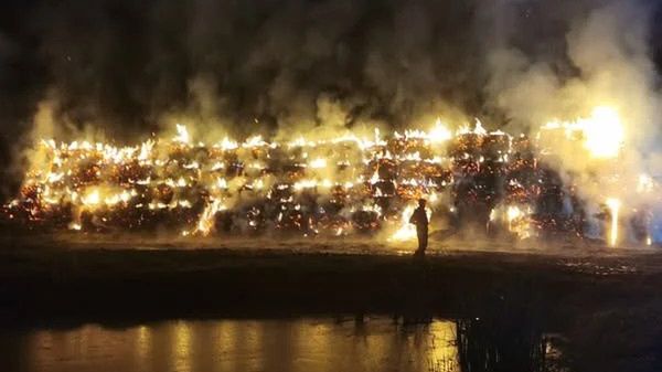 Elizanów: Płomienie zniszczyły roczny zapas słomy. Druh OSP stracił wszystko w ogniu