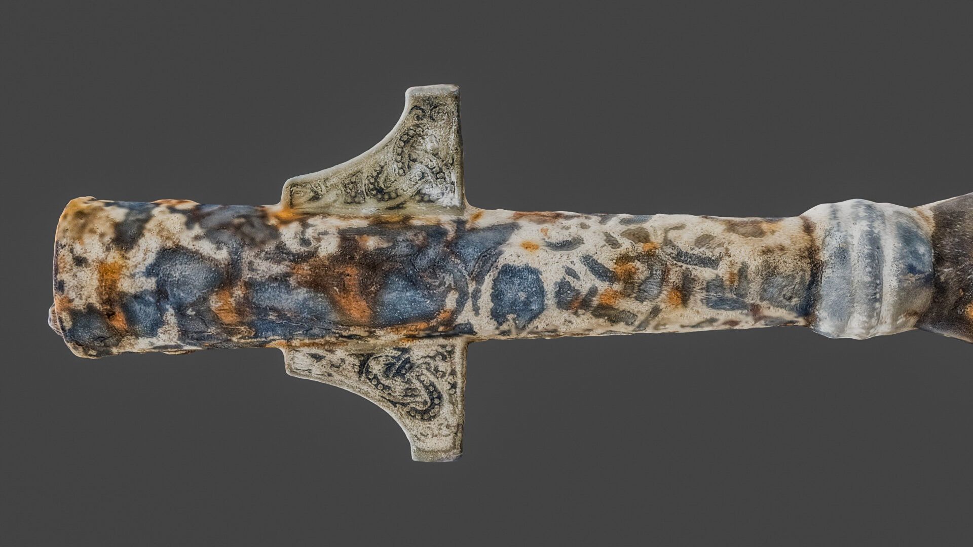 Największe emocje budzi tzw. „włócznia książęca” – grot z misternie zdobioną tuleją i skrzydełkami, na której powierzchni badania wykazały obecność złota, srebra i brązu. Ornament wykonany w motywach spiralnych i plecionkowych przypomina stylizowane pazury i dzioby, co zdaniem naukowców mogło mieć znaczenie symboliczne.