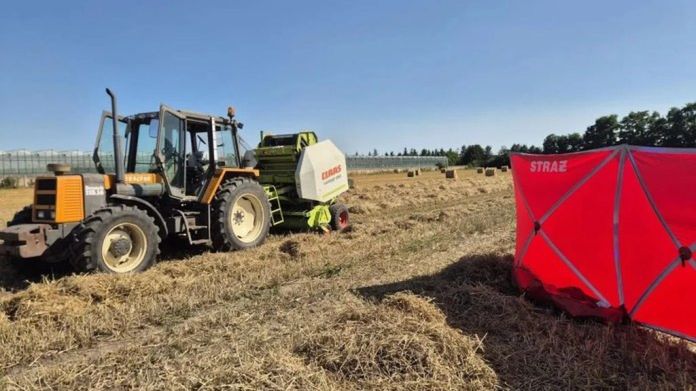 26-letni mężczyzna obsługiwał maszynę belującą słomę, gdy doszło do potwornego zdarzenia – urządzenie wciągnęło mu rękę oraz część tułowia. Na miejsce natychmiast wezwano służby ratunkowe.