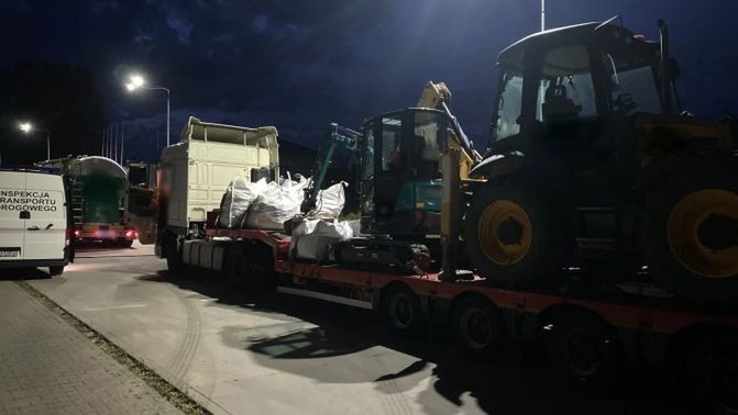 Pierwsza kontrola miała miejsce w piątek, 8 sierpnia, na ul. NSZZ Solidarność w Radomiu (droga krajowa nr 12). Inspektorzy zatrzymali ciągnik siodłowy z niskopodwoziową naczepą. Kierowca przewoził koparko-ładowarkę, minikoparkę, worki Big Bag z kostką brukową oraz paletę krawężników.
