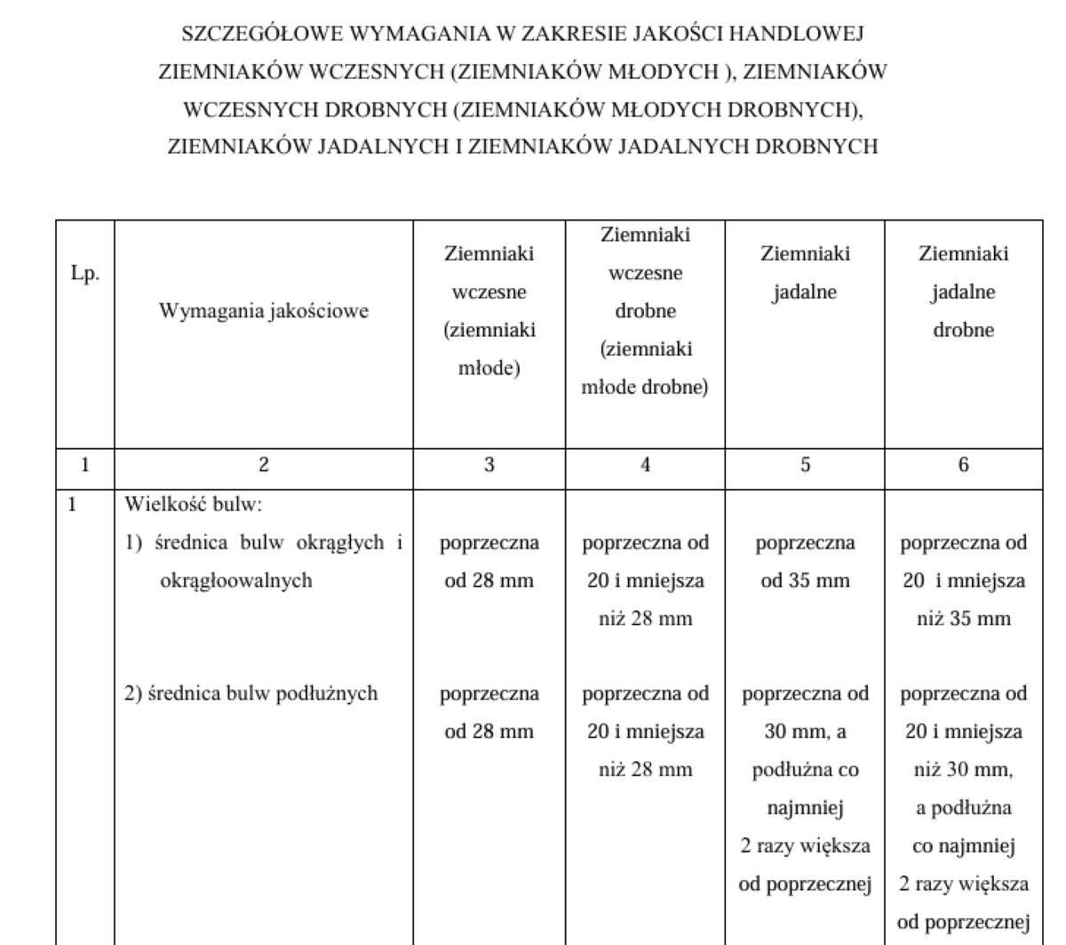 Znowelizowane przepisy szczegółowo definiują nowe kategorie ziemniaków, podając również rozmiary bulw, które można sprzedawać w ramach kategorii „drobne”. Zgodnie z rozporządzeniem:
