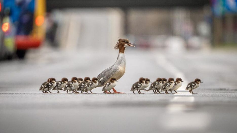 Pierwsza rodzinka nurogęsi przeszła przez Wisłostradę. Mama przechodziła z 17 maluchami! Apel do kierowców
