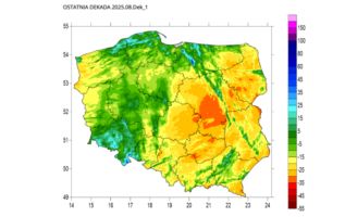 Według obu grafik obecna sytuacja wilgotnościowa w Polsce nie jest zła. Jednakże przyciąga fakt sporych dysproporcji w danych, mimo raportowania do 10 sierpnia br. Przy czym IMGW podaje informacje bardziej precyzyjnie, bo wyłącznie na 1. dekadę sierpnia.