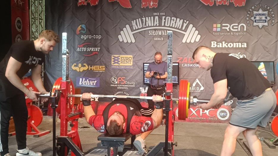 Policjant z Katowic 2-krotnym mistrzem Europy w wyciskaniu sztangi leżąc