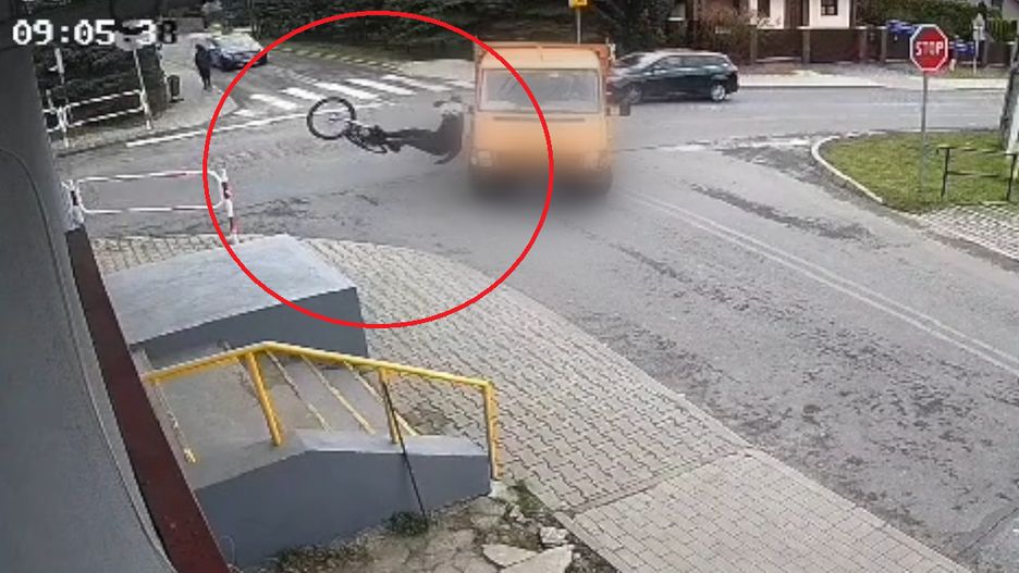 Poważny wypadek z udziałem rowerzysty. Jest nagranie