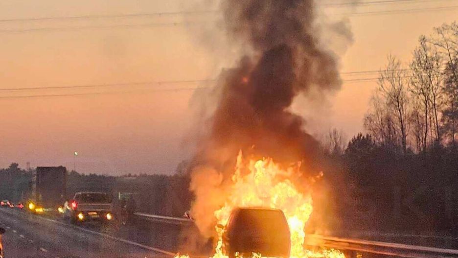 Kierowca, widząc, że auto zaczyna się palić, zjechał na pas awaryjny. Niestety, ogień zaczął szybko zajmować dalszą część pojazdu, aż ostatecznie cały samochód znalazł się w ogniu.