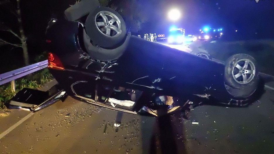Stracił panowanie nad autem i dachował. W BMW pięć młodych osób - wszyscy trafili do szpitala