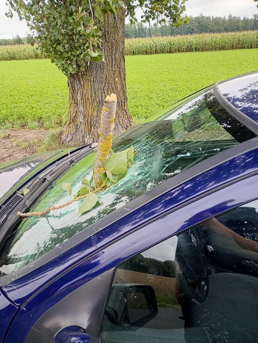 Szczepankowo: Złamany konar przebił szybę czołową osobówki