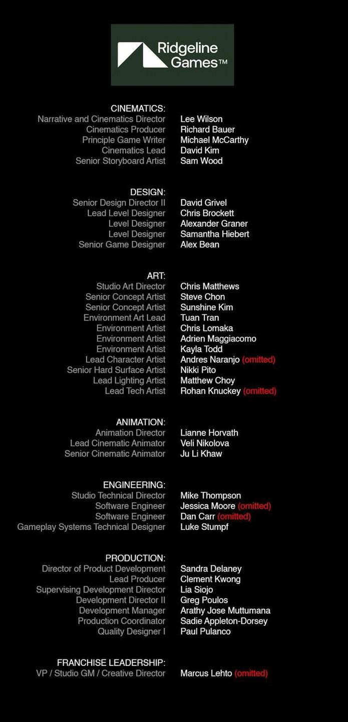 Ci utalentowani deweloperzy pracowali niestrudzenie przez 1–2,5 roku, budując fundament gry, zanim dobrowolnie odszedłem, a studio zostało zamknięte. Pomimo ich znaczącego wkładu, większość została zdegradowana do sekcji „Specjalne podziękowania” w ostatniej części napisów końcowych, a kilku z nich całkowicie pominięto, w tym mnie. [...] Tworzenie gier jest pracą zespołową i każdemu członkowi zespołu należy się sprawiedliwe uznanie – czytamy we wpisie.