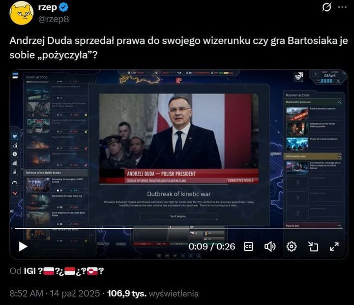 Kończąc temat AI w Systemic War, wspomnę tylko, że gracze byli zaskoczeni pojawieniem się w przerywnikach filmowych postaci łudząco podobnej do polskiego polityka. Którego z nich, to już kwestia sporna, bo zależnie od ujęcia bohater wygląda bardziej jak były prezydent Andrzej Duda lub Zbigniew Ziobro. Czy wizerunek został wykorzystany legalnie, należałoby zapytać prawników, ale zgodnie z Art. 81 Ustawy o prawie autorskim i prawach pokrewnych, zezwolenia nie jest konieczne, gdy dotyczy „osoby powszechnie znanej, jeżeli wizerunek wykonano w związku z pełnieniem przez nią funkcji publicznych, w szczególności politycznych, społecznych, zawodowych”.