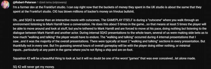 Jeden z komentarzy Roberta Petersona o grze Squadron 42.YouTube