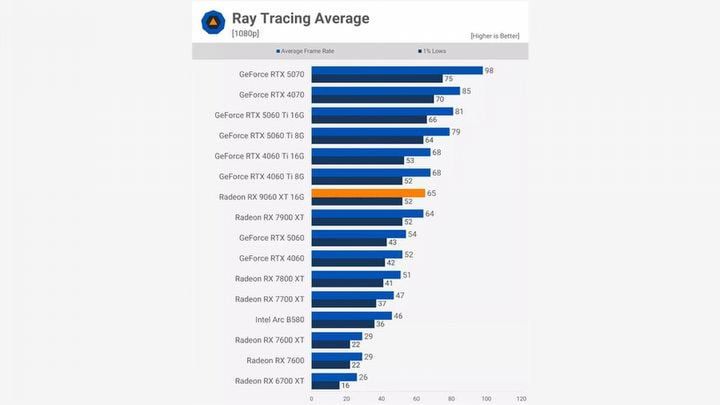 Jako przykład leaker pokazał wykres z jednego z benchmarków, gdzie RX 9060 XT ma dwukrotnie wyższą liczbę klatek na sekundę od RX-a 7600, mimo że obie karty graficzne mają taką samą liczbę jednostek obliczeniowych. Obecnie, zdaniem leakera, architektura RDNA 4 oferuje wydajność od dwóch do czterech razy wyższą na każdą jednostkę obliczeniową niż ta w PS5.