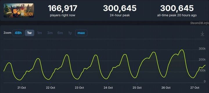 Teraz jednak tytuł osiągnął kolejny imponujący kamień milowy – wczoraj w szczytowym momencie bawiło się w nim ponad 300 tysięcy graczy jednocześnie. W momencie pisania tego tekstu Escape From Duckov przyciąga na Steamie więcej osób niż chociażby Battlefield 6.