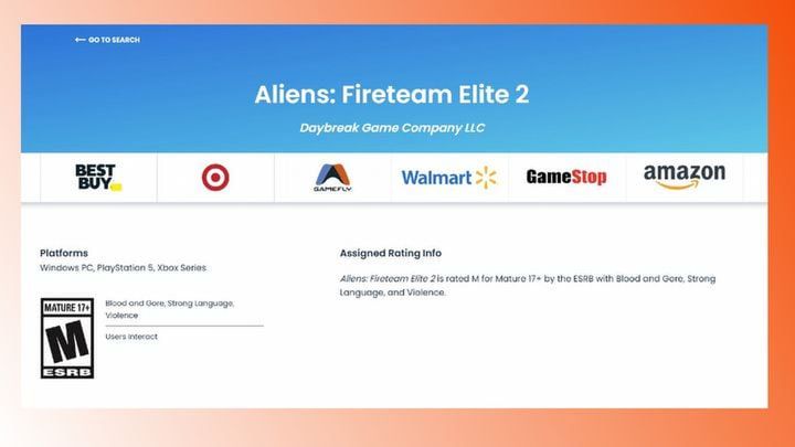 Karta Aliens: Fireteam Elite 2 na stronie organizacji ESRB.Źródło: PCGamesN