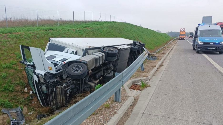 Kierowcy podróżujący drogą ekspresową S61 w kierunku Łomży muszą liczyć się z poważnymi utrudnieniami w ruchu. Na 112. kilometrze trasy doszło do zdarzenia drogowego, w wyniku którego samochód ciężarowy znalazł się w rowie.
