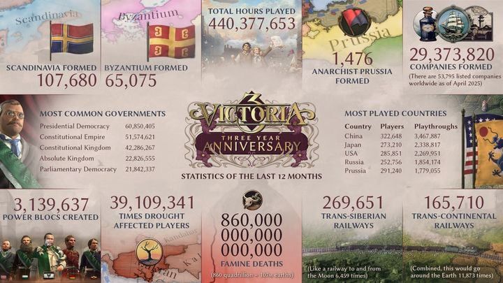 Victoria 3 – statystyki graczy z ostatniego roku.Paradox Interactive