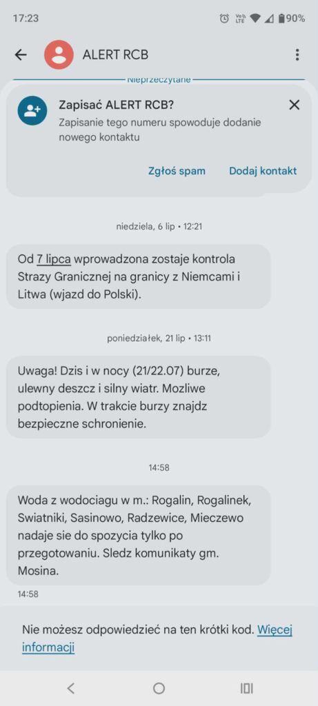 Mieszkańcy otrzymali Alert RCB. Co ciekawe, informacja trafiła także do części mieszkańców m.in. sąsiedniej gminy Kórnik.