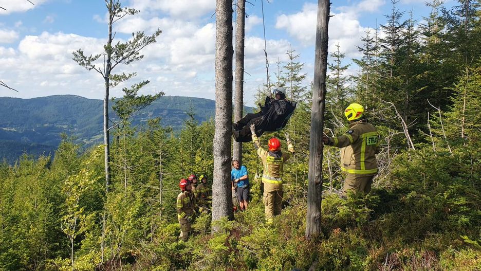 Bielsko-Biała: Paralotniarz utknął na drzewie. Potrzebował pomocy
