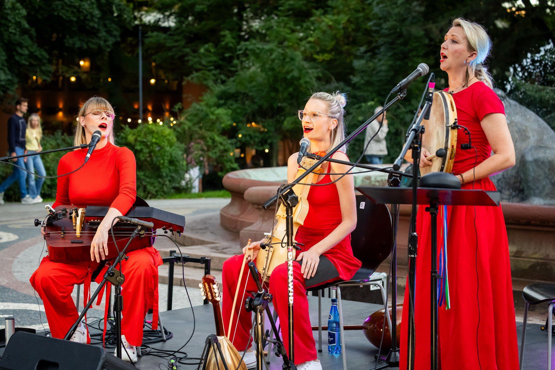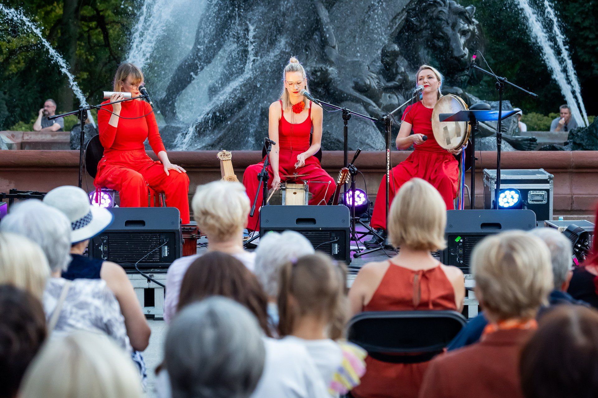 Bydgoszcz: Trzy dziewczyny z miasta i wiejskie piosenki przy Fontannie Potop. Zdjęcia z koncertu zespołu Svahy