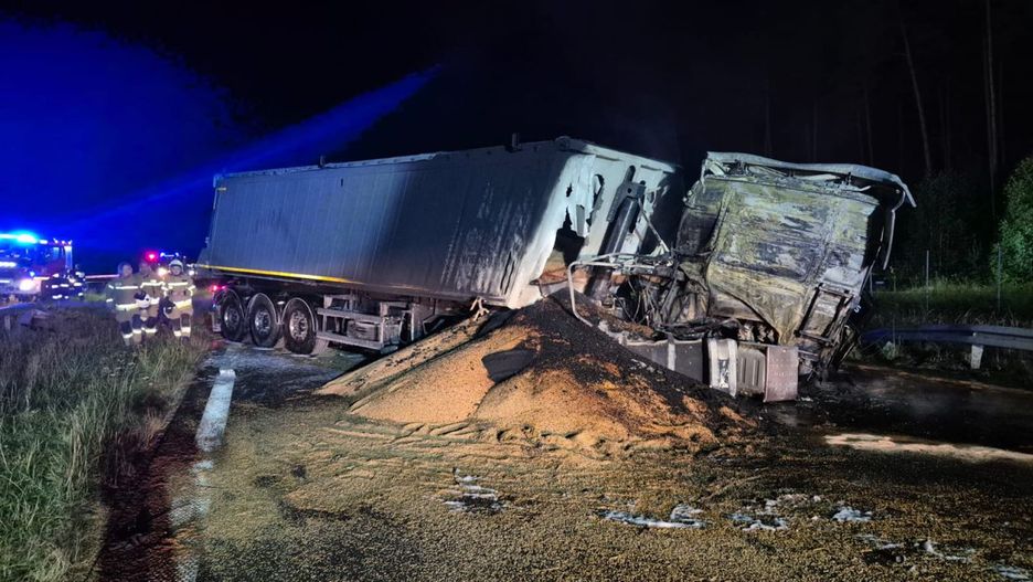 Jak informuje Policja, wstępne ustalenia wskazują, że przyczyną wypadku mógł być wystrzał opony w ciężarówce, co doprowadziło do jej zjazdu na przeciwległy pas jezdni.