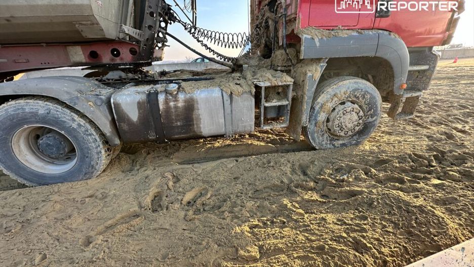 Niebawem w zaistniałym korku doszło do kolejnego zdarzenia. Na wysokości Koszajca kierujący ciężarówką gwałtownie hamował, aby nie uderzyć w busa. Z ciężarówki typu wanna wysypał się na drogę oraz auta przed nim mokry piach. Nikomu nic się nie stało. Miejsce zdarzenia zabezpiecza straż pożarna.
