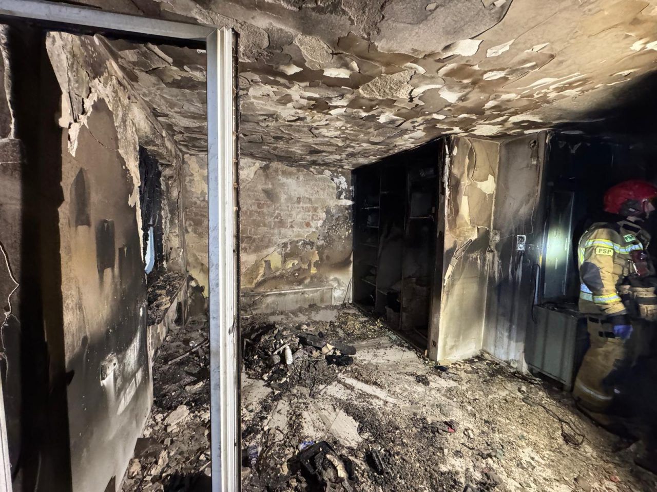 Na miejsce zdarzenia zadysponowano dwa zastępy z giżyckiej Jednostki Ratowniczo-Gaśniczej, a także strażaków z Wojskowej Straży Pożarnej oraz Ochotniczej Straży Pożarnej w Spytkowie. Po przybyciu na miejsce strażacy zauważyli płomienie wydobywające się z okien mieszkania na I piętrze. Jednocześnie podjęto działania gaśnicze i przeprowadzono ewakuację pozostałych mieszkańców budynku przy wsparciu policji.
