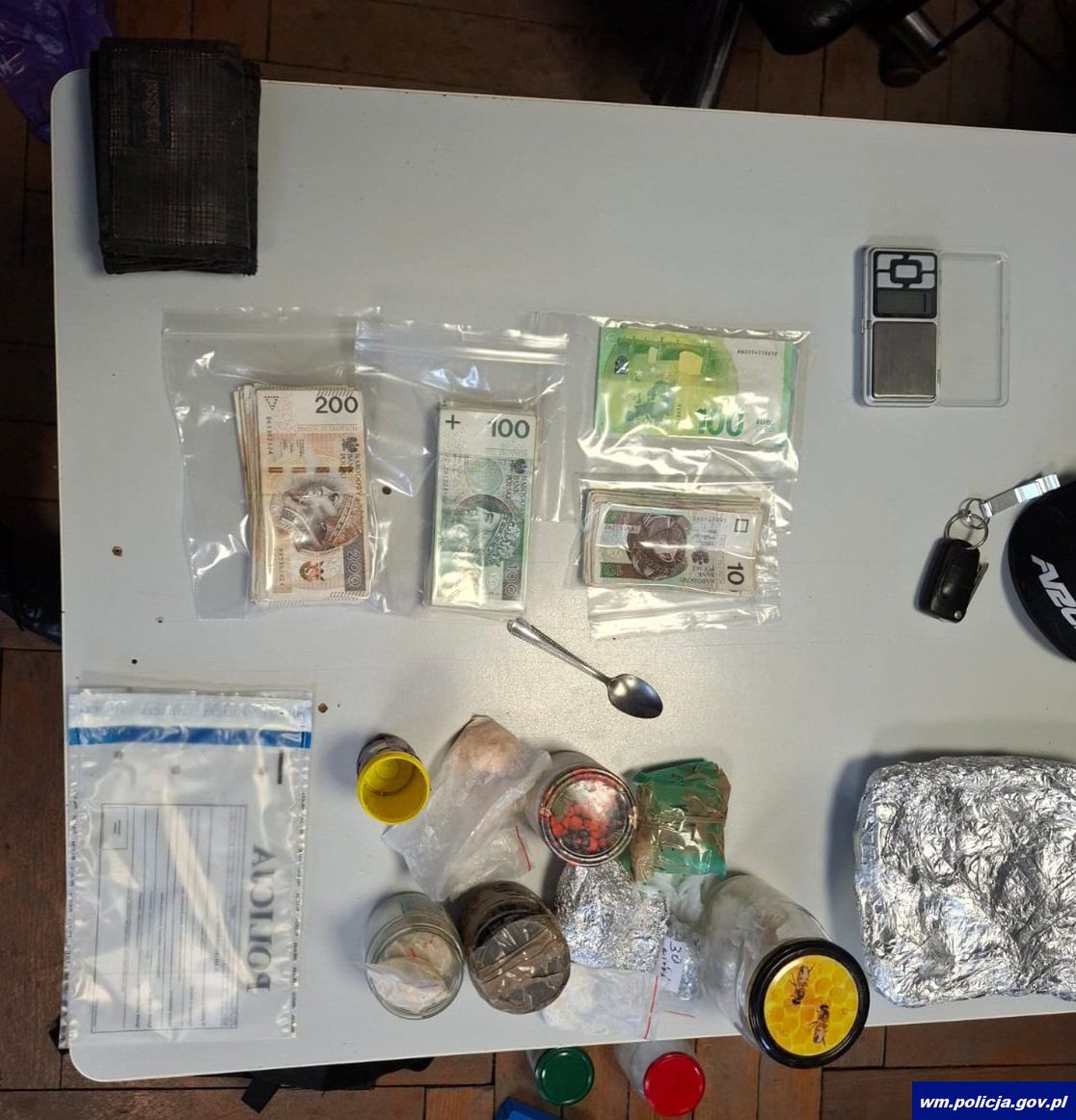 Do ujawnienia narkotyków doszło podczas działań operacyjnych prowadzonych przez funkcjonariuszy Wydziału Kryminalnego Komendy Powiatowej Policji w Giżycku. W mieszkaniu zabezpieczono amfetaminę, metaamfetaminę, susz konopi innych niż włókniste oraz 12 tabletek ekstazy. Policjanci znaleźli również 27 tysięcy złotych, które – jak podejrzewają – mogą pochodzić z handlu narkotykami.