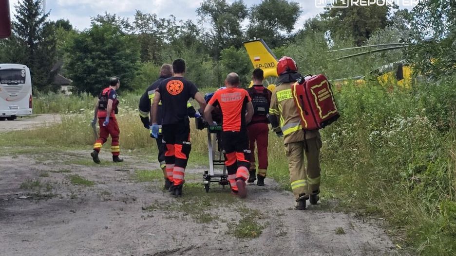 Przytomnego poszkodowanego natychmiast objęli pomocą ratownicy medyczni. Na miejscu pracowały dwa zastępy straży pożarnej, zespół ratunkowy ZRM, oraz śmigłowiec Lotniczego Pogotowia Ratunkowego.