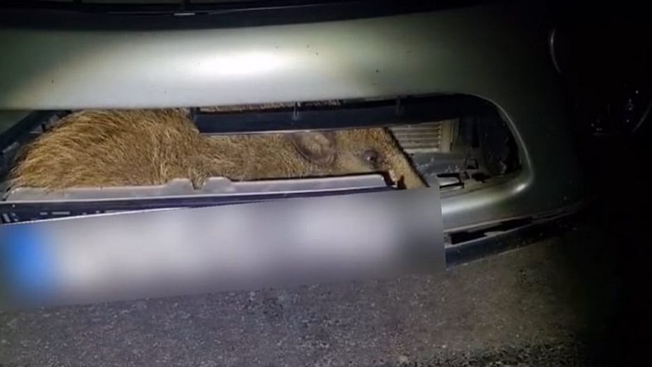 Gostyńscy policjanci zostali wezwani późnym wieczorem do niecodziennego zdarzenia. Kierująca samochodem osobowym, jadąc w ciemności poza terenem zabudowanym, potrąciła zwierzę, które nagle wbiegło na jezdnię. Z obawy o własne bezpieczeństwo nie zatrzymała się od razu w nieoświetlonym miejscu, lecz kontynuowała jazdę do Gostynia. Dopiero tam zdecydowała się sprawdzić stan pojazdu. Wówczas odkryła, że w komorze silnika ukrył się mały dzik.