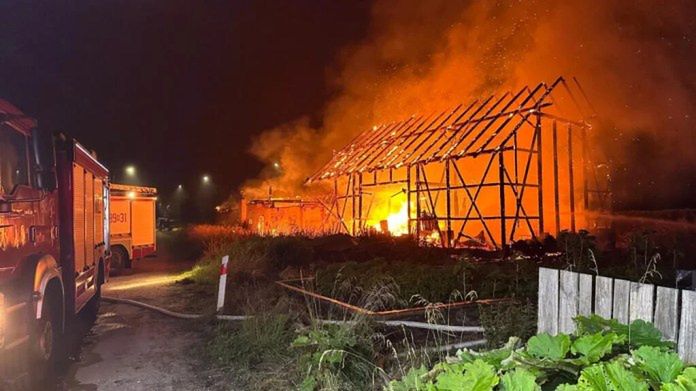Ignalin: Ogromny pożar stodoły. W środku 1,5 tony akumulatorów