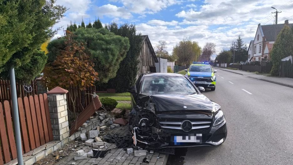 Dzięki geolokalizacji pojazdu funkcjonariusze szybko ustalili miejsce zdarzenia – miejscowość Jabłoń. Na miejscu patrol zastał częściowo stojący na chodniku uszkodzony samochód, który uderzył w betonowe ogrodzenie jednej z posesji. W toku działań policji oraz zeznań świadków ustalono, że kierującym mercedesem był 26-letni mieszkaniec gminy Milanów. Początkowo próbował on polubownie rozwiązać sprawę z właścicielką uszkodzonego ogrodzenia.