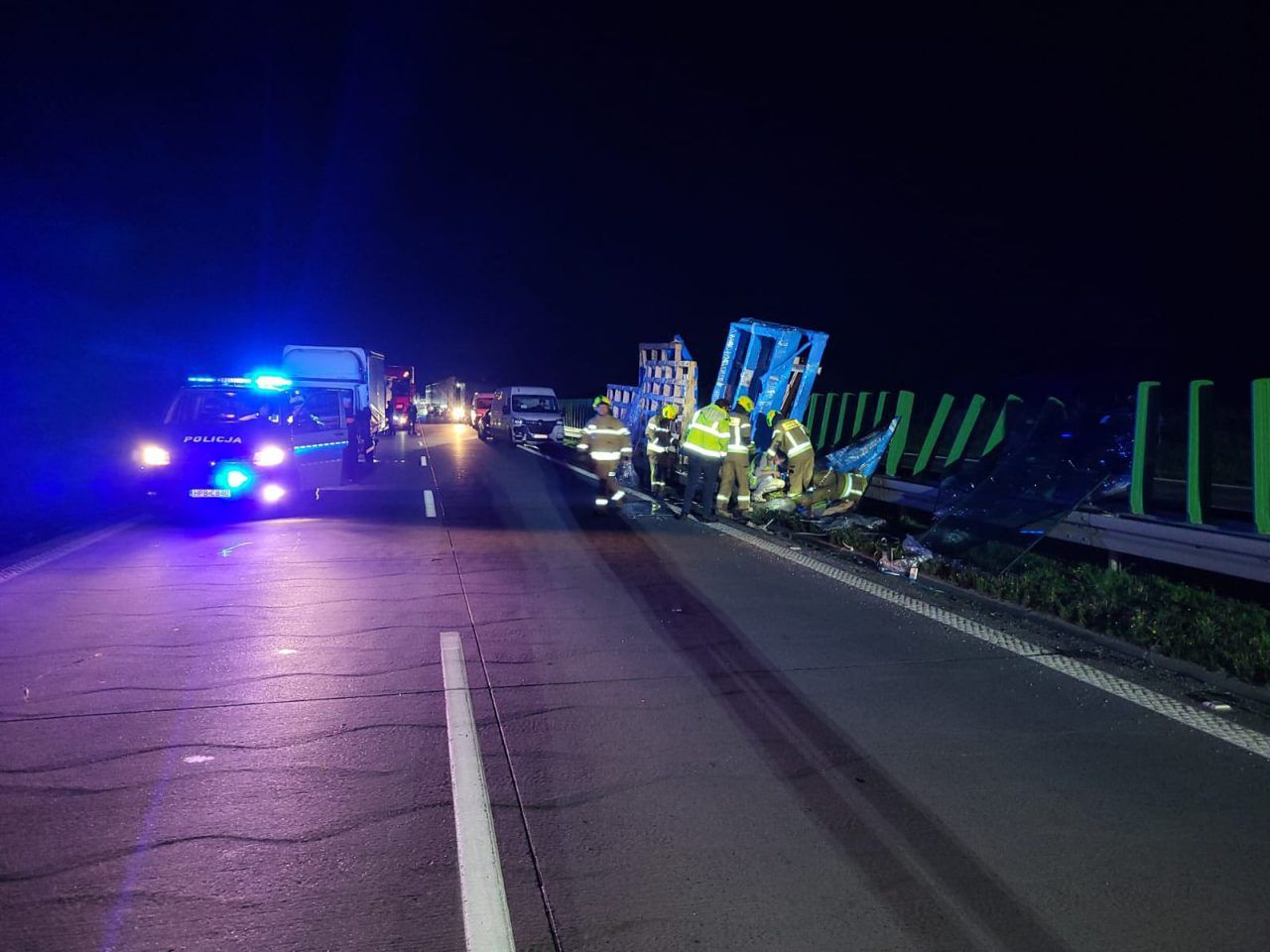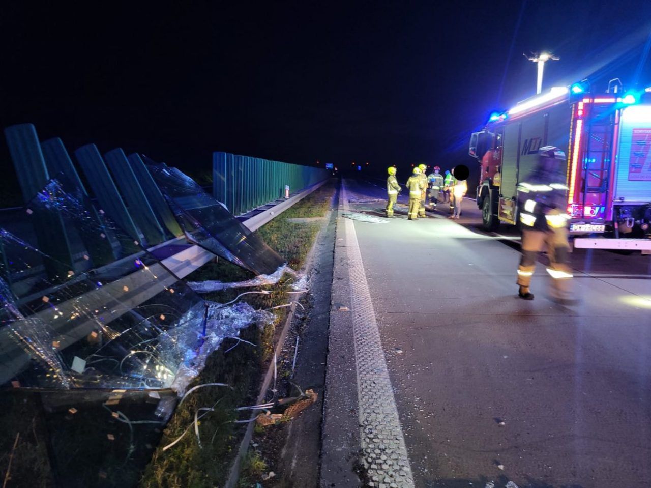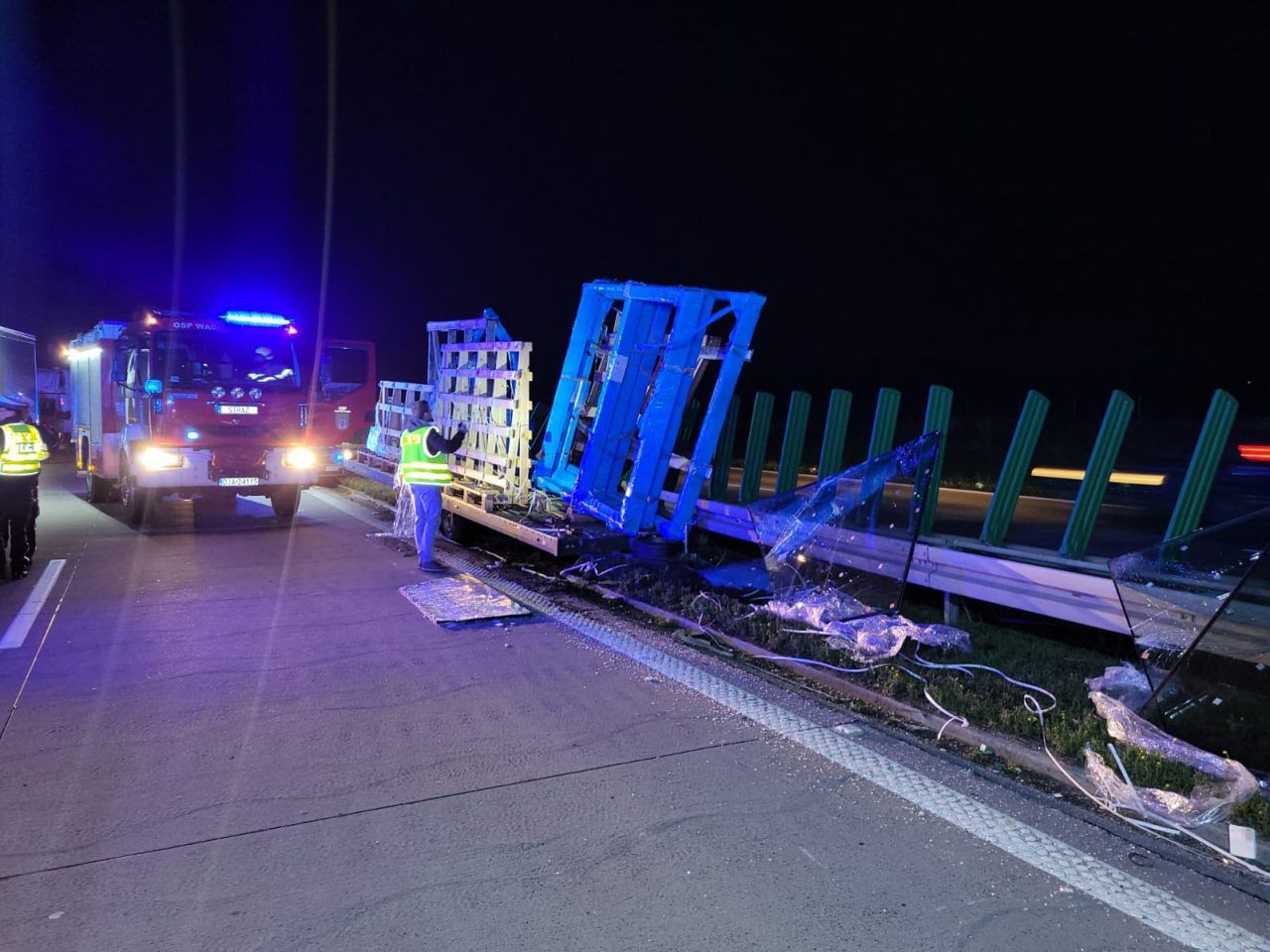 Oderwana przyczepa uderzyła w bariery energochłonne, a transportowane szyby rozsypały się na jezdni, stwarzając realne zagrożenie dla przejeżdżających pojazdów. Na szczęście w zdarzeniu nikt nie ucierpiał.