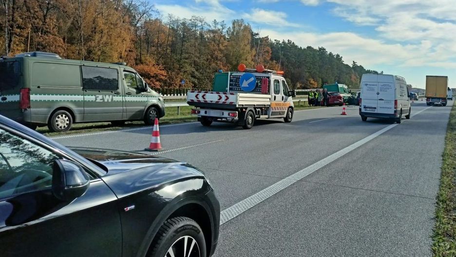 Po chwili kobieta kierująca hyundaiem na widok utrudnień zaczęła zwalniać. Zaskoczyło to jadącego za nią kierowcę peugeota. Nie zdołał on wyhamować i doprowadził do zderzenia z hyundaiem. Następnie oba auta wpadły w stojące pojazdy Żandarmerii Wojskowej.