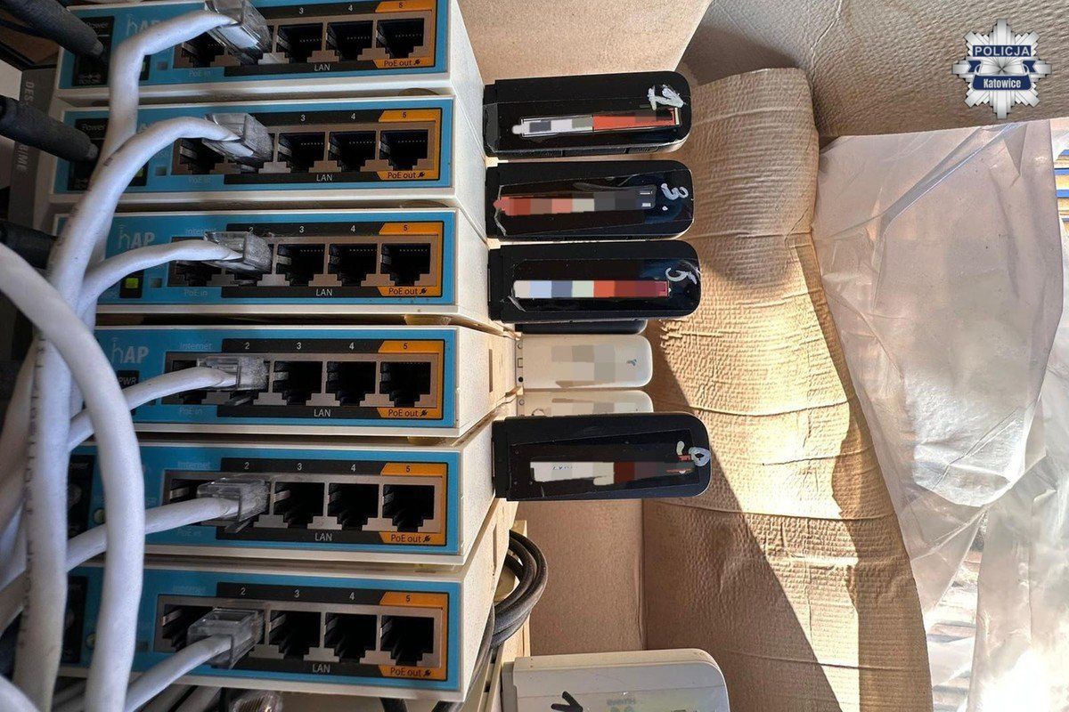 Podczas przeszukania mieszkania mundurowi znaleźli urządzenia służące do pozyskiwania i łamania haseł — m.in. modemy, routery Wi-Fi i karty SIM. Jak informuje śląska policja, z zabezpieczonego sprzętu korzystano do przełamywania zabezpieczeń kont społecznościowych, z których następnie dokonywano oszustw finansowych.
