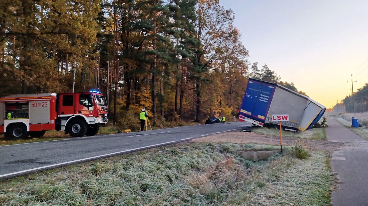 Kolonia Lisów: Zjechał na czołówkę z ciężarówką. 49-letni mężczyzna zginął na miejscu