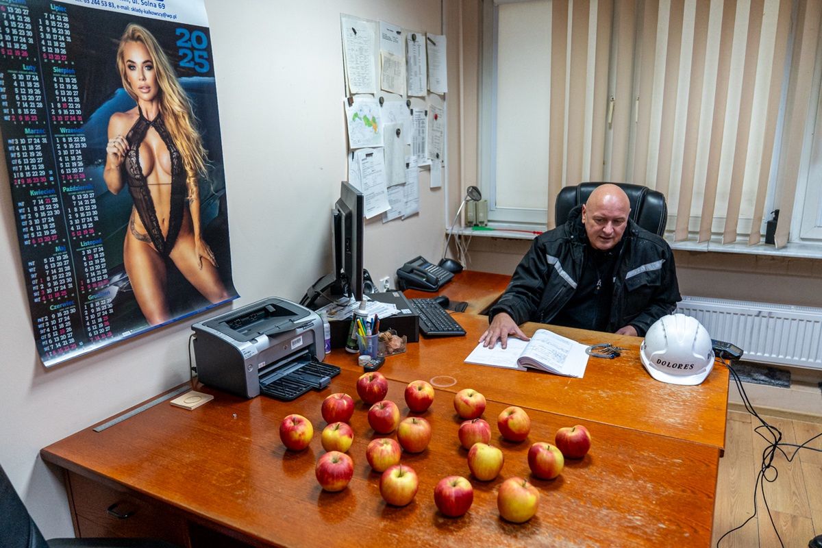 Swoje pomieszczenia w budynku mają również kierownicy. Grzegorz Przebieracz – kierownik zmiany C – pokazuje nam swoje biuro, gdzie codziennie odbiera i przekazuje raporty od swojego poprzednika i następcy oraz poszczególnych sztygarów odpowiedzialnych za elektrykę, automatykę czy koleje górnicze. – Wszyscy się łączą, każdy mówi, co w danym dniu ma zaplanowane. Czasami jest tak, że elektrycy potrzebują postój, mechanicy, górnicy, żeby to jakoś scalić, umówić się na daną godzinę, że robimy na przykład dwie godziny postoju od tej i do tej – wyjaśnia nadsztygar.