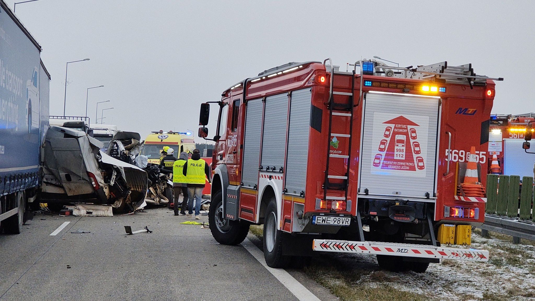 Koszmarny wypadek z udziałem dwóch ciężarówek i busów na srodze S8. Cztery osoby zginęły