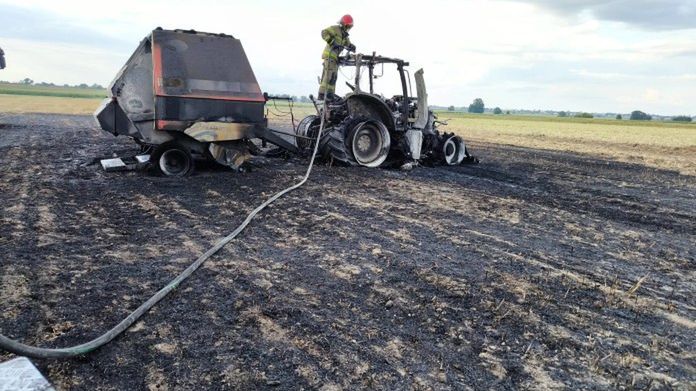 Pożar rozpoczął się od jednej z maszyn – zapaliła się prasa rolująca, a następnie ogień szybko przeniósł się na ciągnik rolniczy. Mimo szybkiej reakcji operatora, obie maszyny spłonęły doszczętnie. Dodatkowo ogień objął również kilkaset metrów kwadratowych zboża i ścierniska, co znacznie utrudniło akcję gaśniczą.