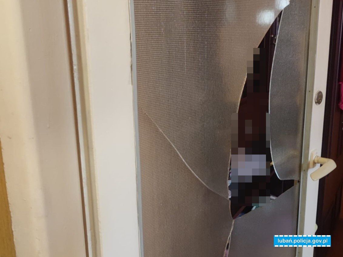 Jak relacjonuje Komenda Powiatowa Policji w Lubaniu, w poniedziałkowy ranek dzielnicowi otrzymali zgłoszenie o młodym mężczyźnie, który niszczy mieszkanie. Już na klatce słychać było głośną muzykę i tłuczone szkło. Funkcjonariusze, obawiając się o bezpieczeństwo osób mogących przebywać w lokalu, zdecydowali o wejściu siłowym.