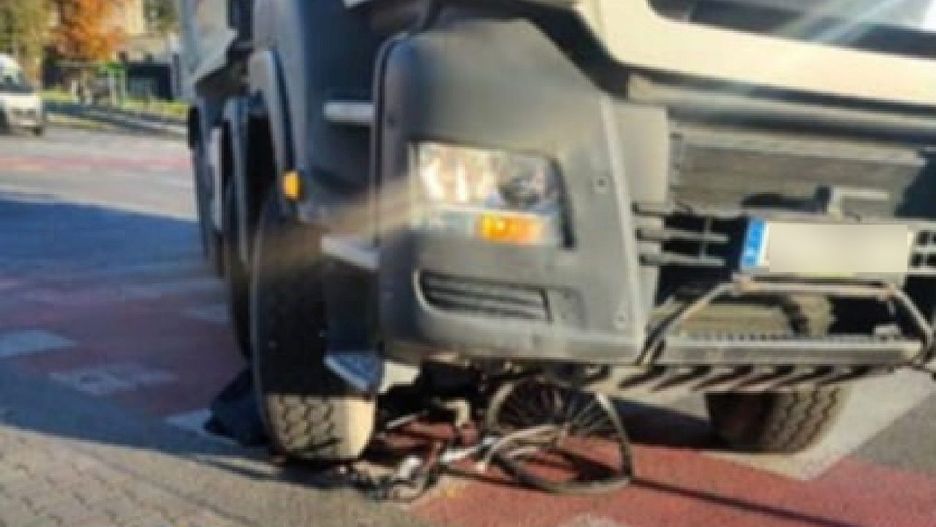 Lublin: Zdążył w ostatniej chwili. Rower znalazł się pod kołami ciężarówki