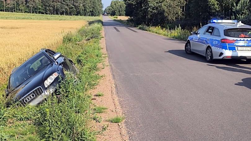 Do zdarzenia doszło we wtorek rano (15.07), na drodze relacji Krępa - Rywociny. Jak wynika z ustaleń interweniujących policjantów, kierujący audi, 42 -letni mieszkaniec powiatu mławskiego, zjechał z drogi do rowu. Rowem przejechał jeszcze kilkadziesiąt metrów. Był kompletnie pijany – badanie alkomatem wykazało ponad 3,5 promila alkoholu w jego organizmie.