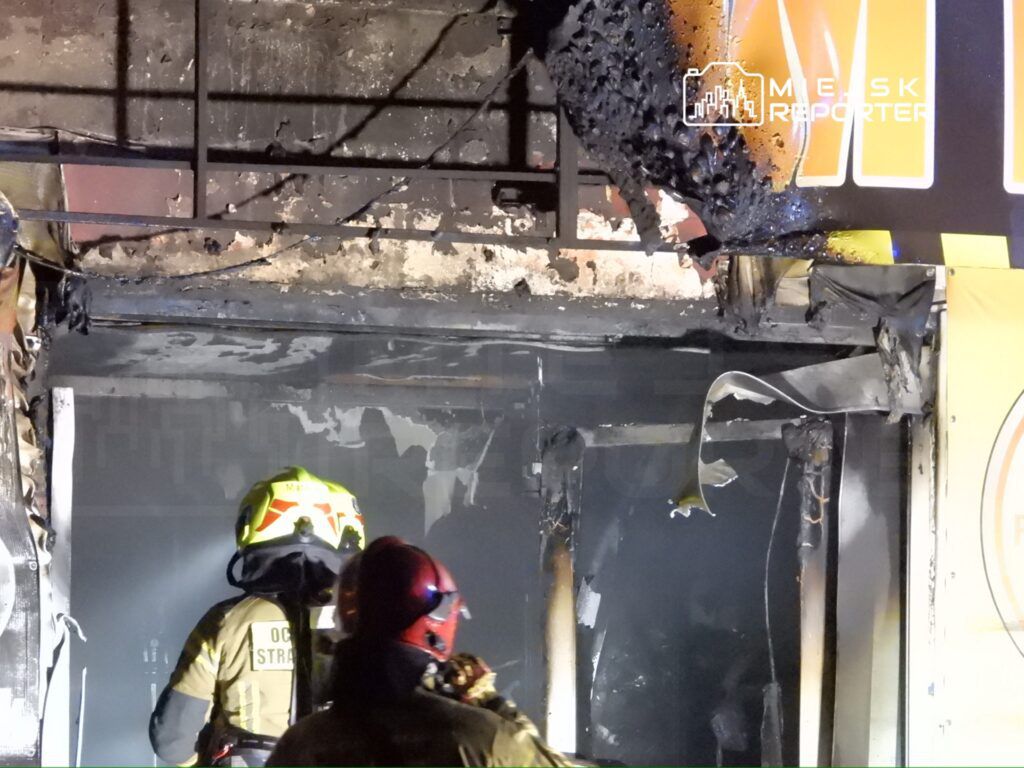 Zgłoszenie o pożarze wpłynęło do straży pożarnej o godzinie 19:25. Po przybyciu na miejsce strażacy zastali ogień obejmujący pomieszczenie handlowe, z którego płomienie wydostawały się na zewnątrz przez okna.