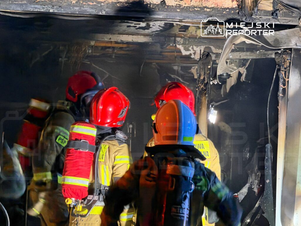 Strażacy zlokalizowali pożar około godziny 19:40. Obecnie działania są na etapie dogaszania i sprawdzania pogorzeliska, a teren wokół uszkodzonego lokalu pozostaje zabezpieczony.