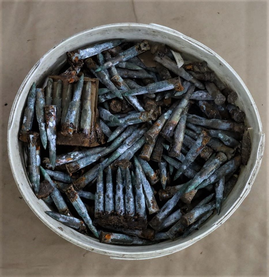 W budynku gospodarczym funkcjonariusze zabezpieczyli sztucer z czterema pociskami przy kolbie, trzy lufy broni palnej, worki z kolejną amunicją oraz wiadra wypełnione skorodowaną amunicją. 67-latek nie wyjaśnił, skąd pochodził nielegalny sprzęt.